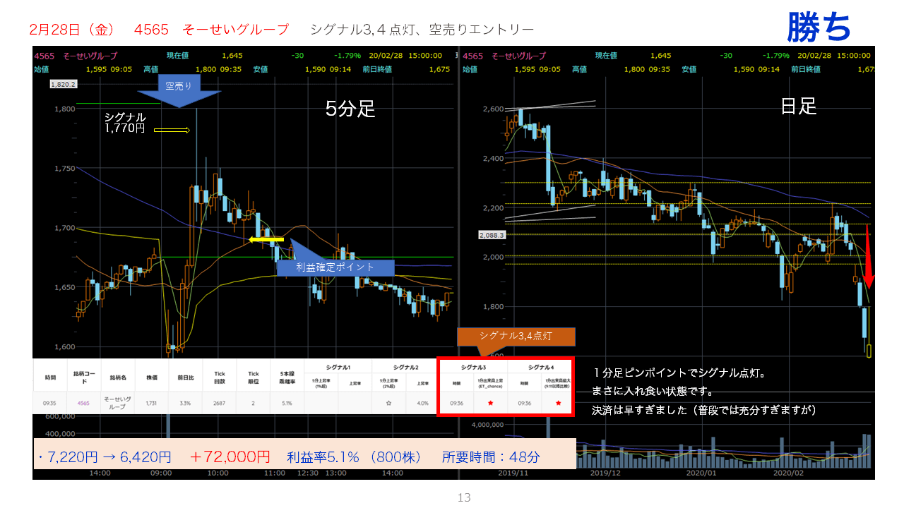 マザーズ1%スキャル「 2020年2月28日 のトレード結果」そーせいグループ(4565)