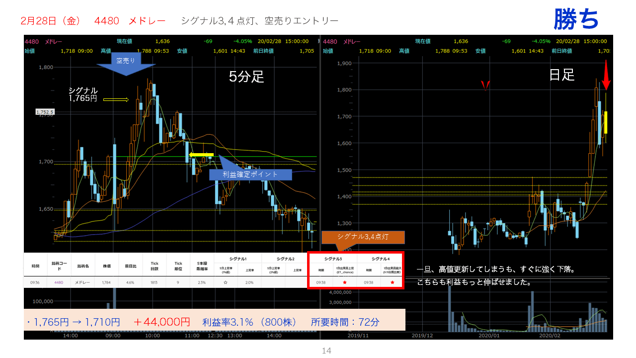 マザーズ1%スキャル「 2020年2月28日 のトレード結果」メドレー(4480)